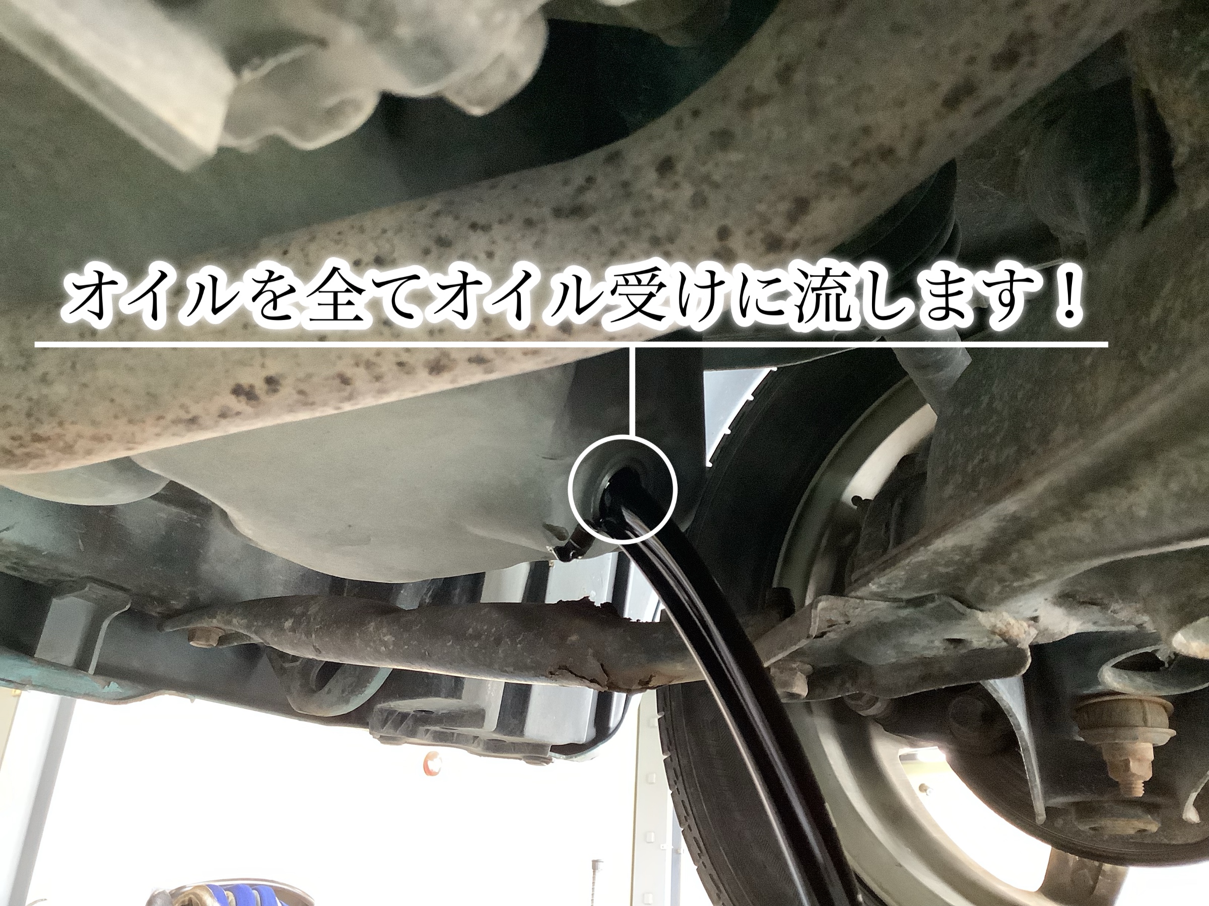 まずは車を上げてオイルを抜いていきます!