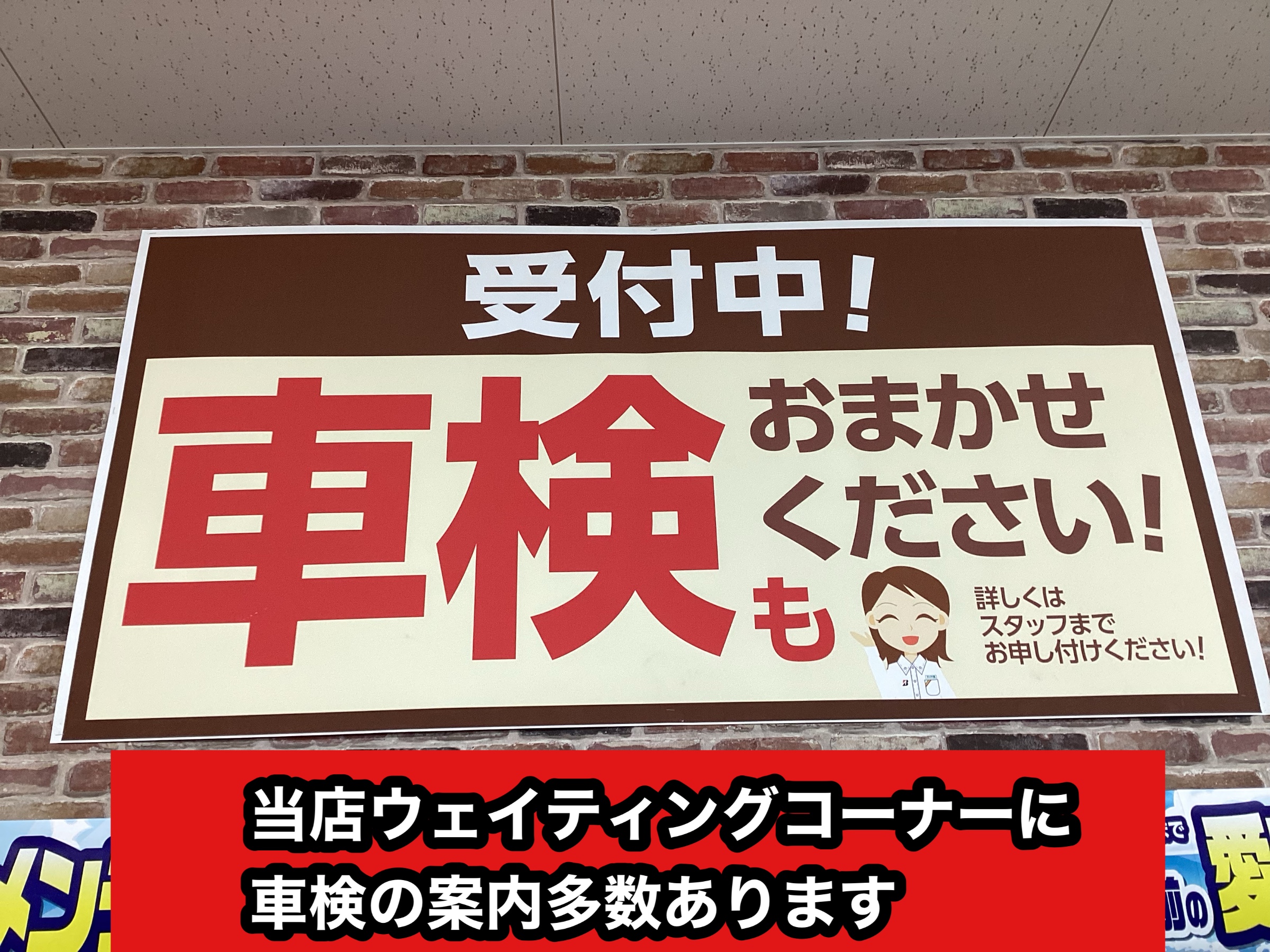 当店ウェイティングコーナーにー車検の案内があります