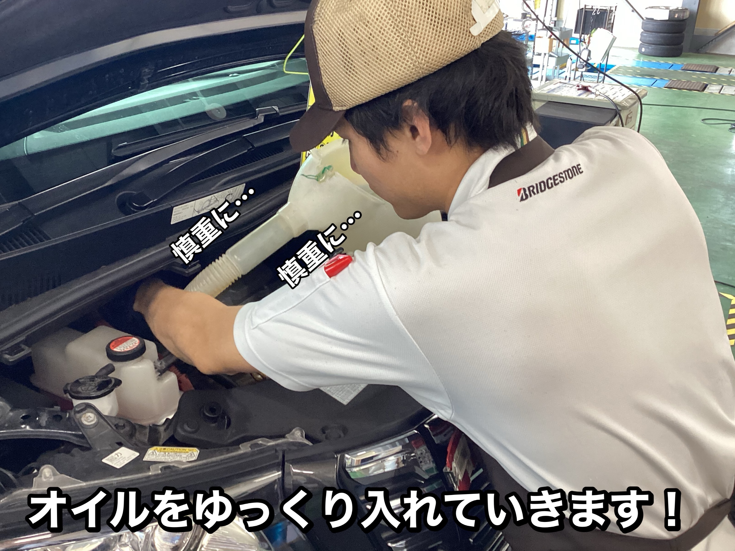 ボンネットを開けて、オイルの注ぎ口であるフィラーキャップを開けたら