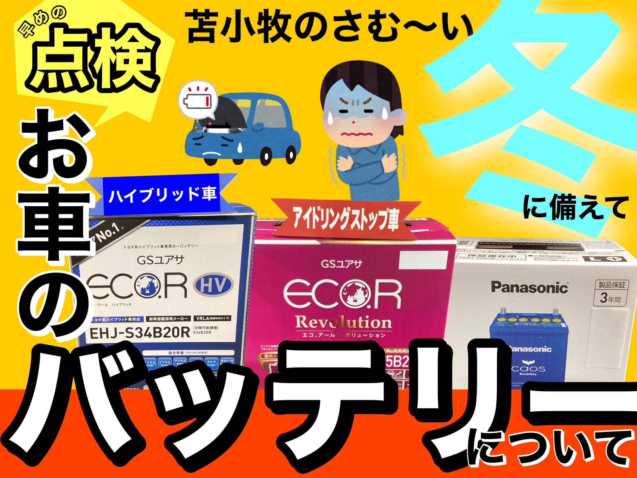 苫小牧の本格的な冬に入ると、バッテリー上がりの問題が多発します