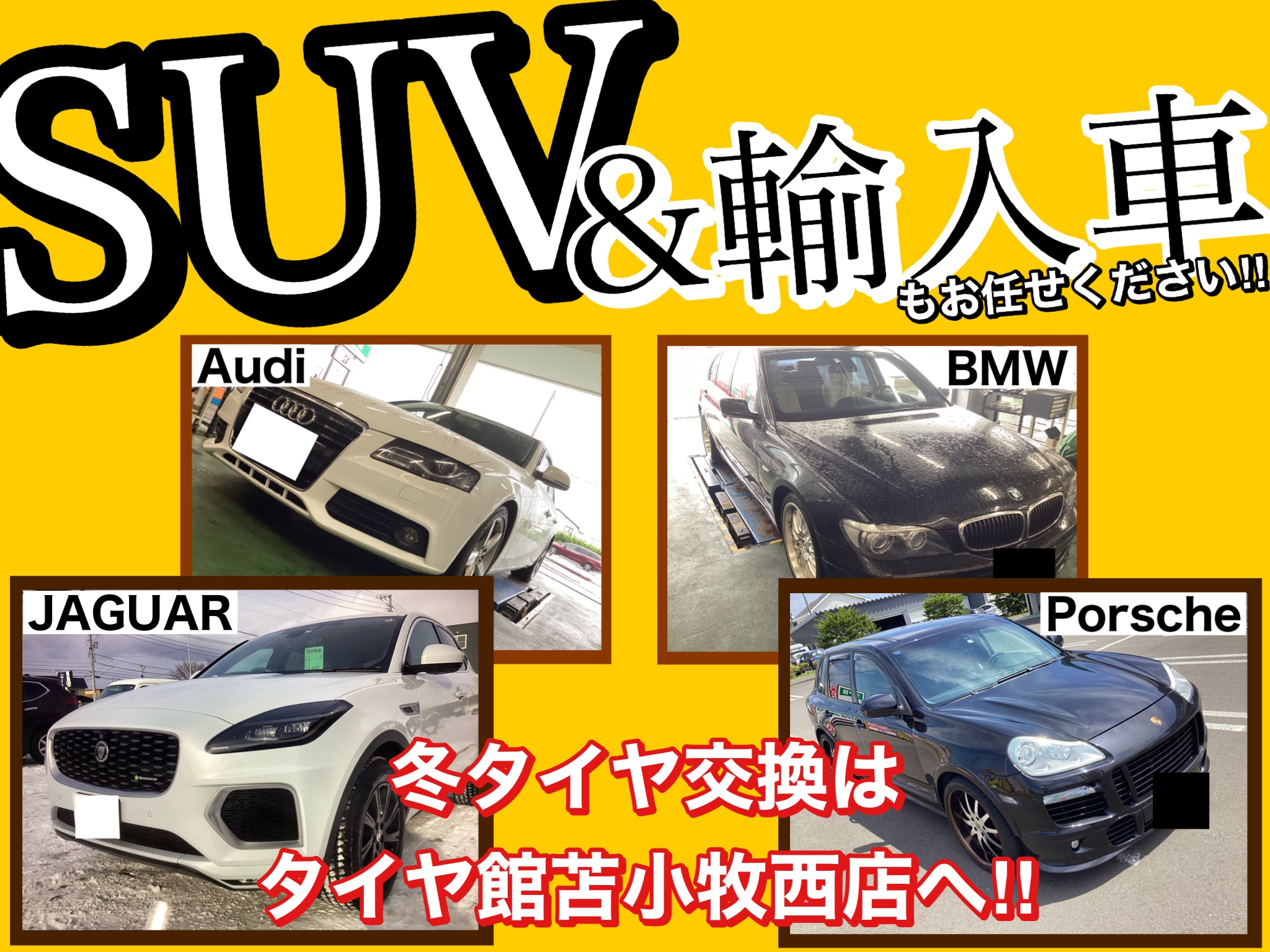 SUV&輸入車の冬タイヤ交換はタイヤ館苫小牧西店にお任せください!