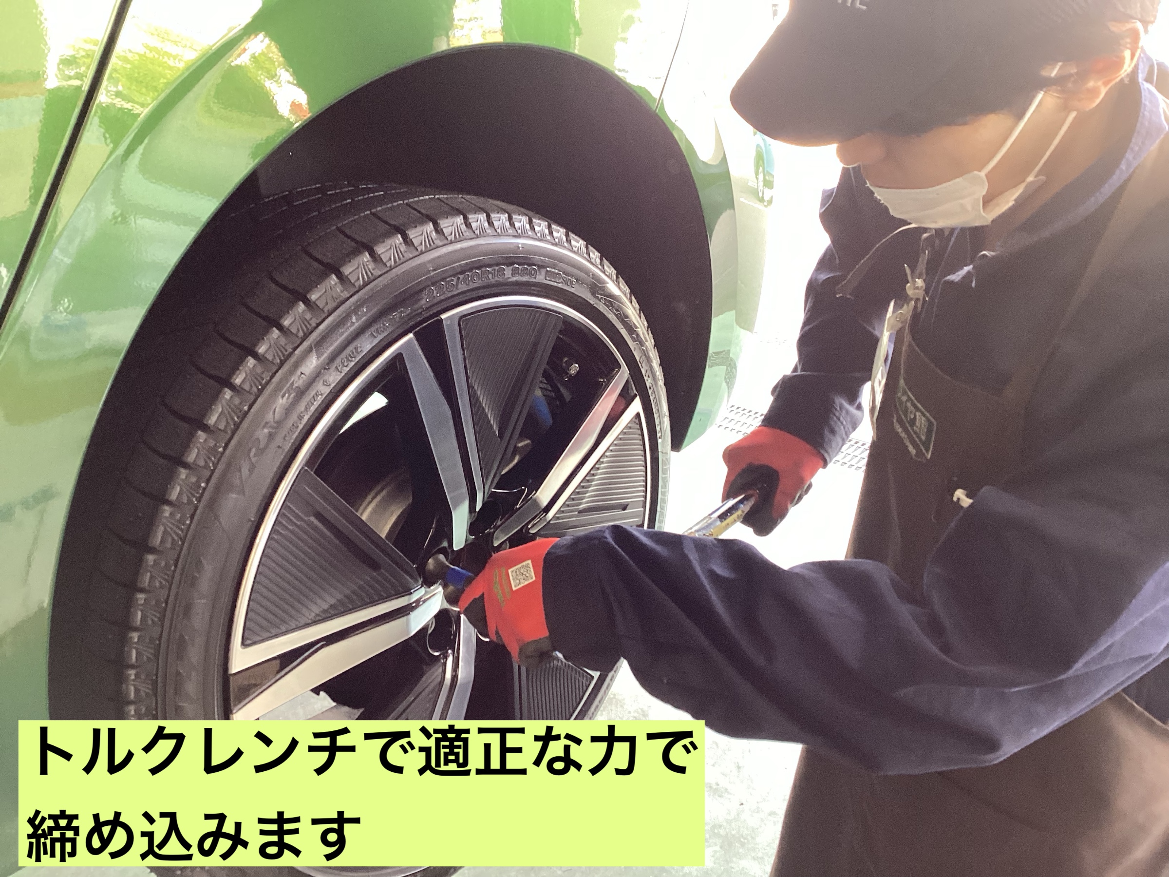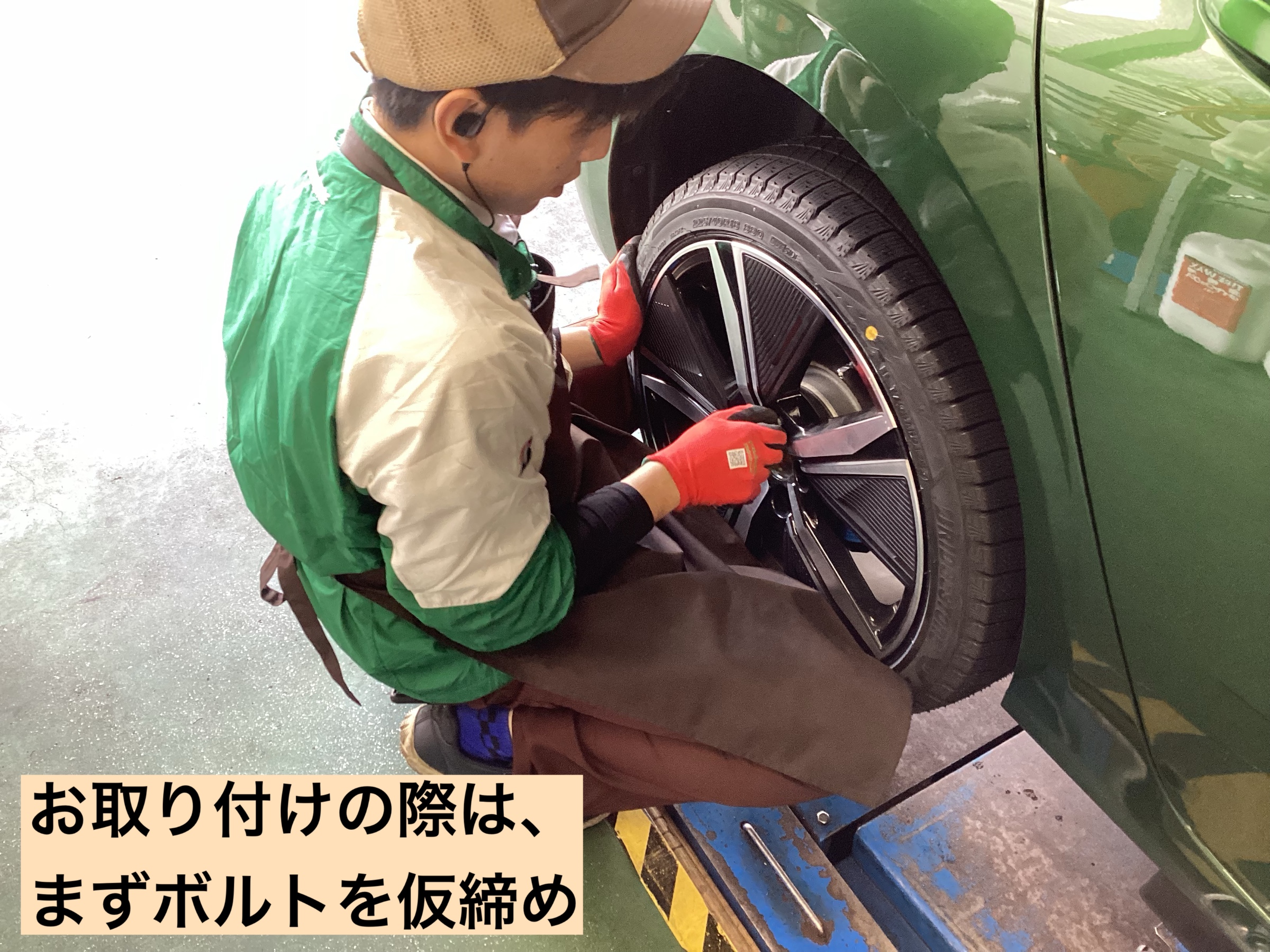 純正ホイールへ冬タイヤを組み替え、バランス調整を行い