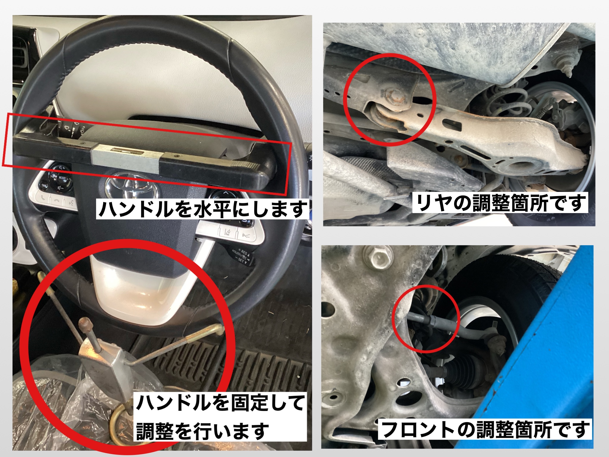 調整箇所はお車の下からのぞいた状態です!