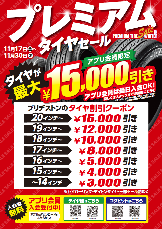 【プレミアムタイヤセール】を開催いたします!