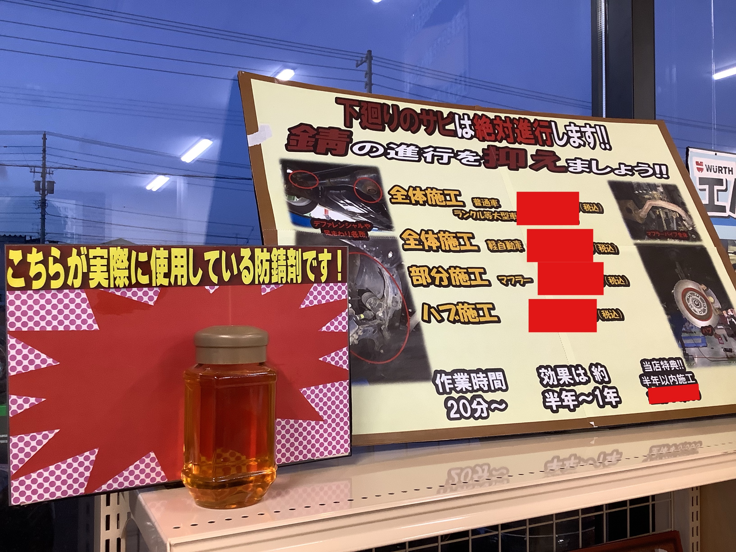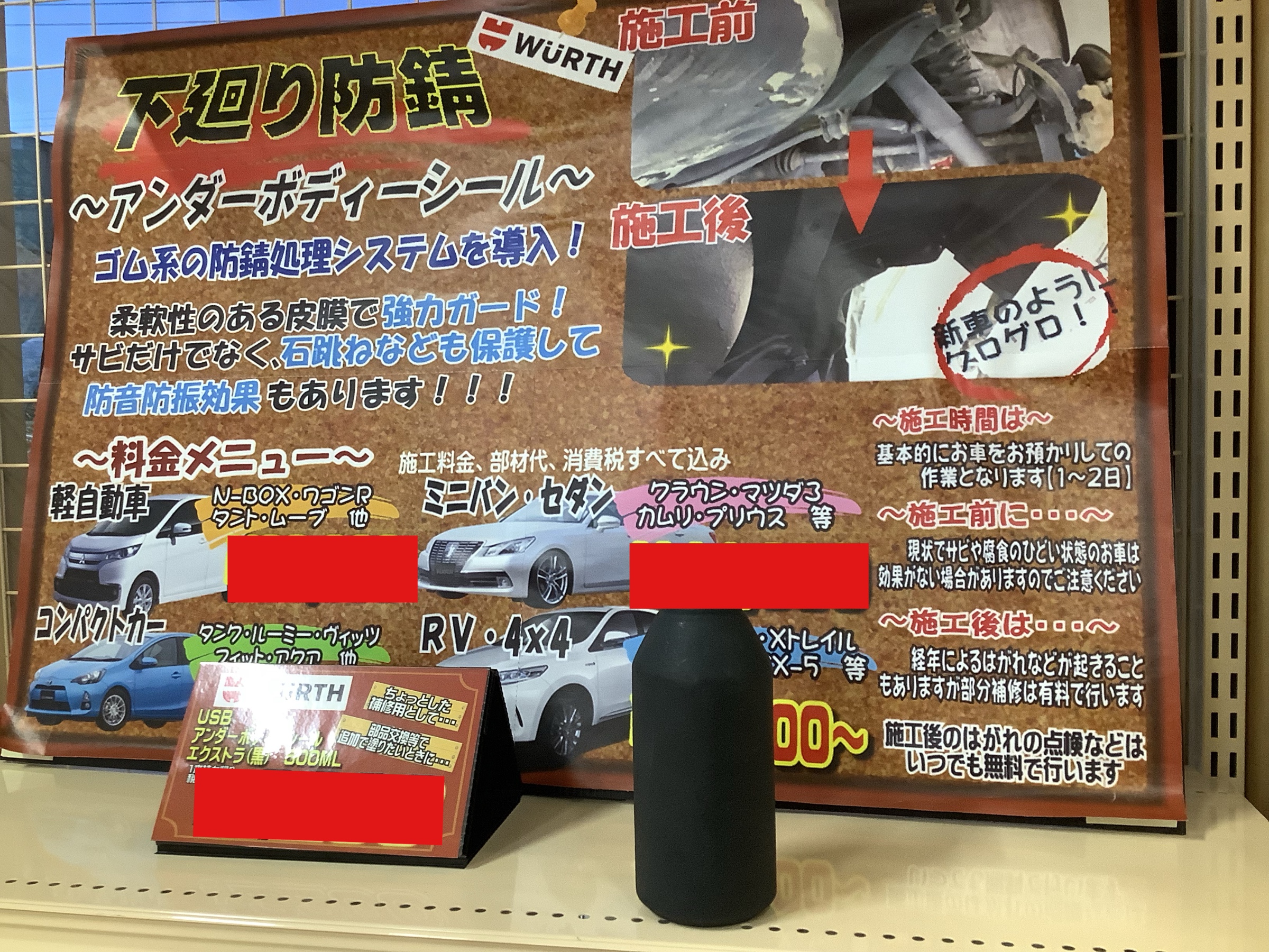 またWURTH防錆は数日お車を当店に置いていただいての