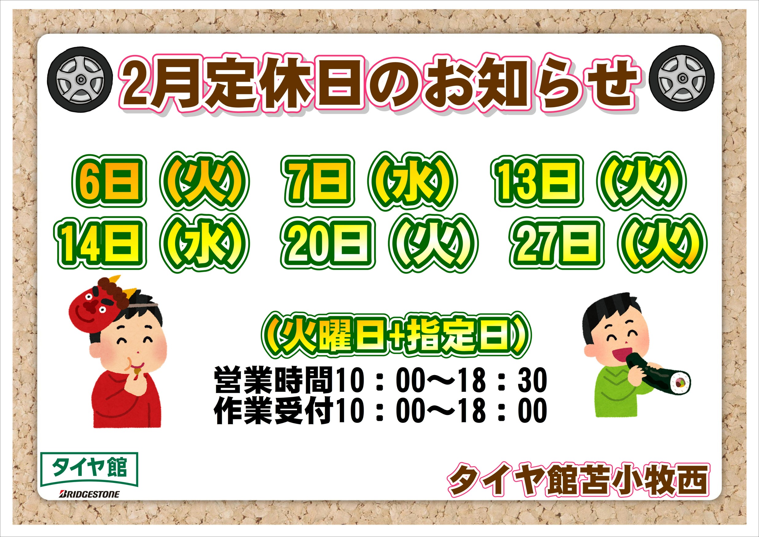 2月のイベント&定休日のお知らせ