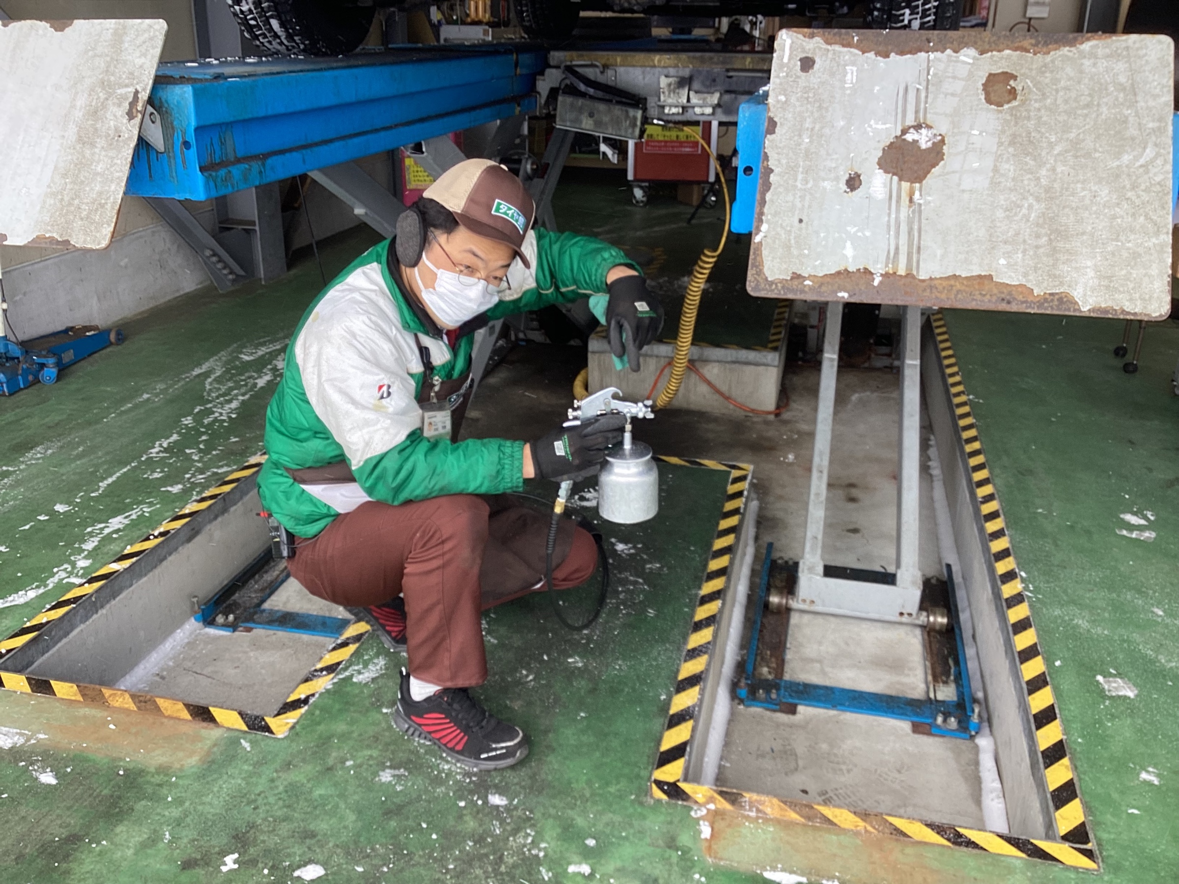 特殊な液体を吹きかけるタイプの下廻り防錆作業!