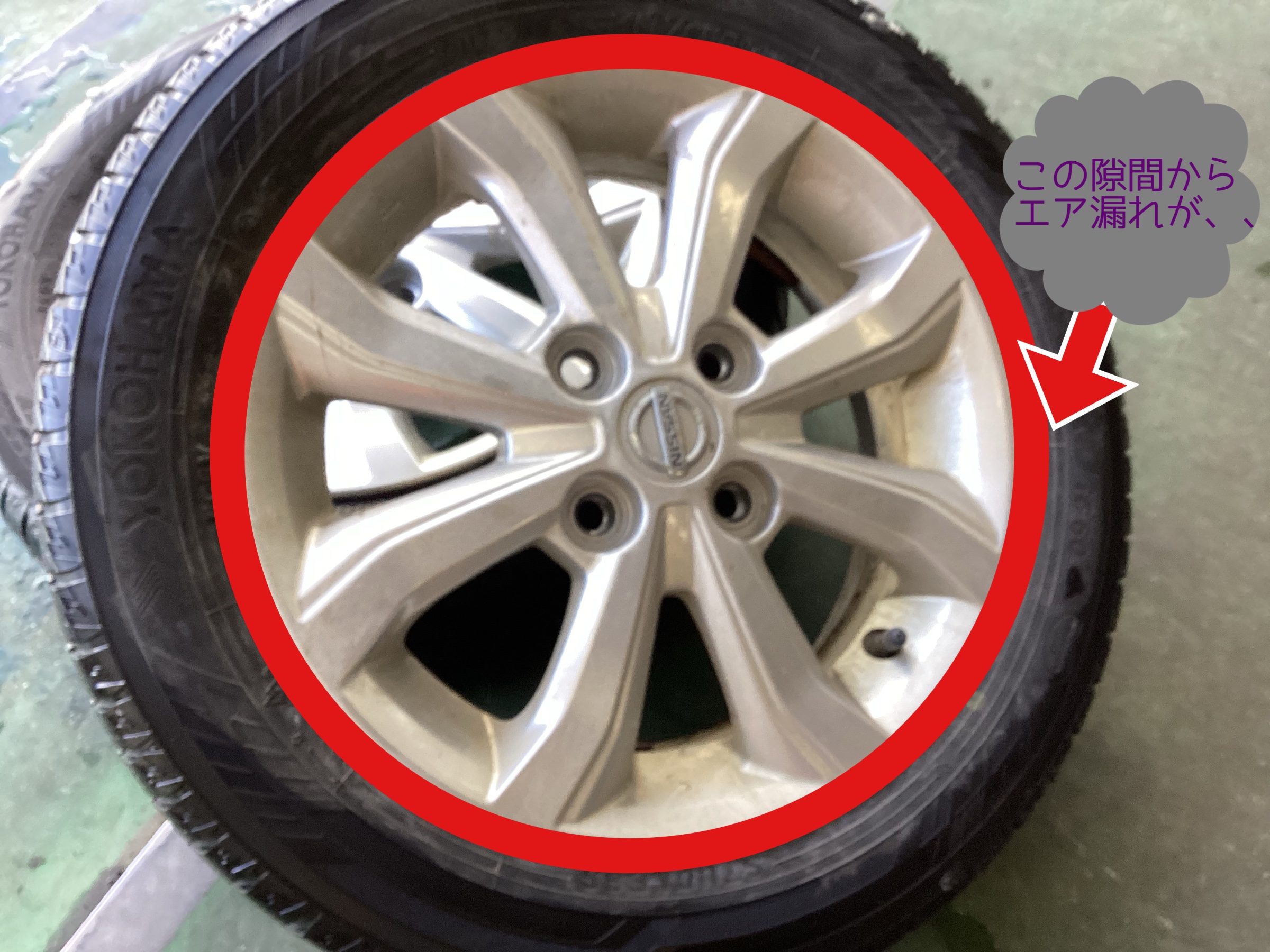 タイヤとホイールの隙間からのエア漏れ
