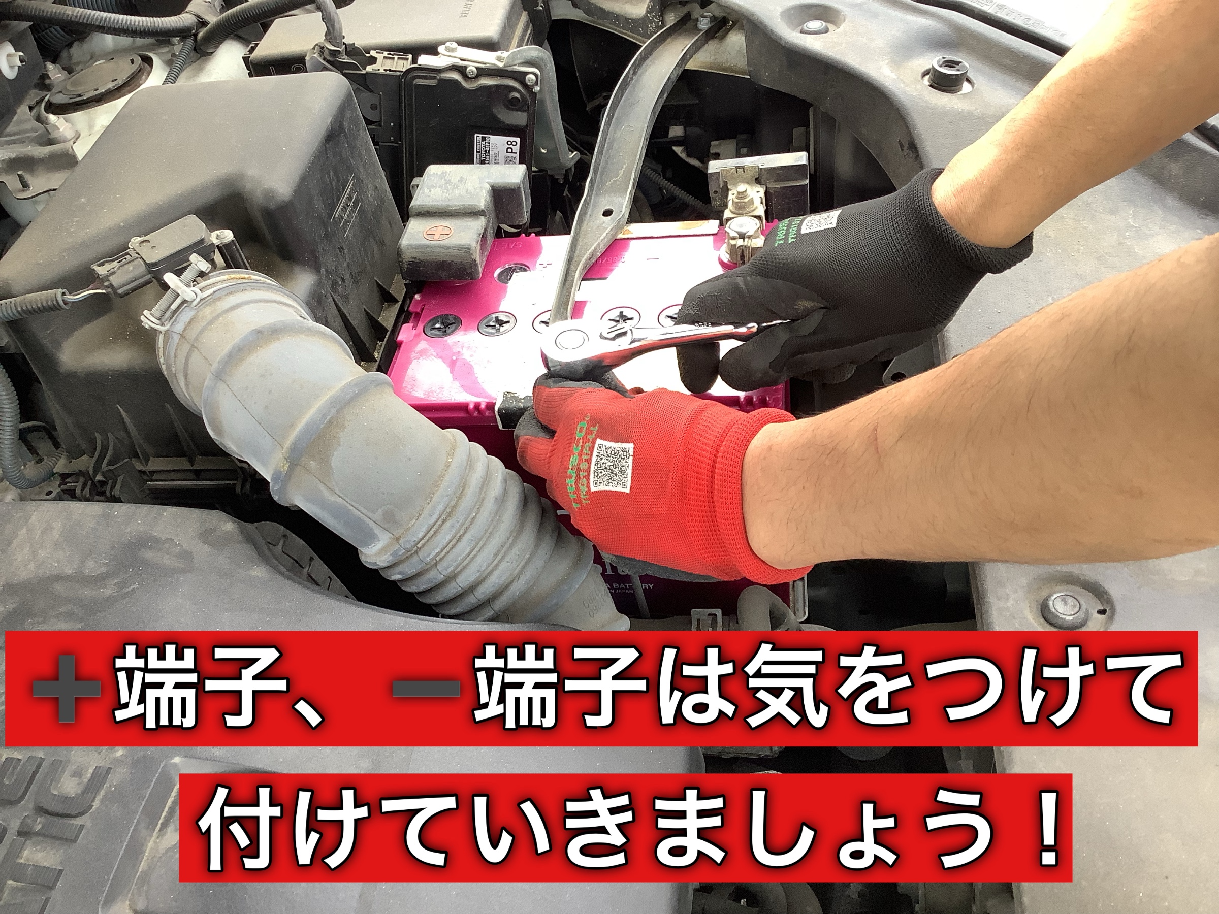 作業中にプラス端子を触っている時はかなり危険な事がありますので