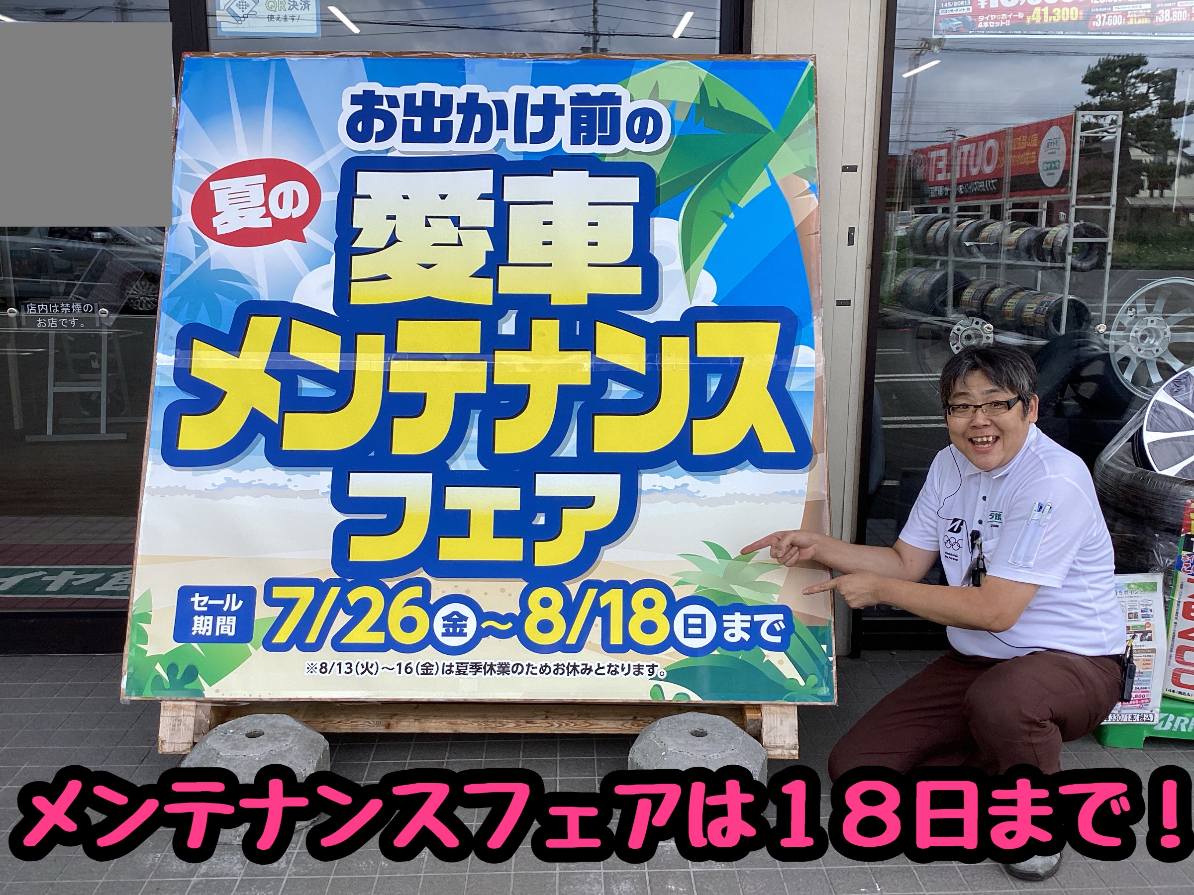 愛車メンテナンスフェアは8月18日まで開催中です