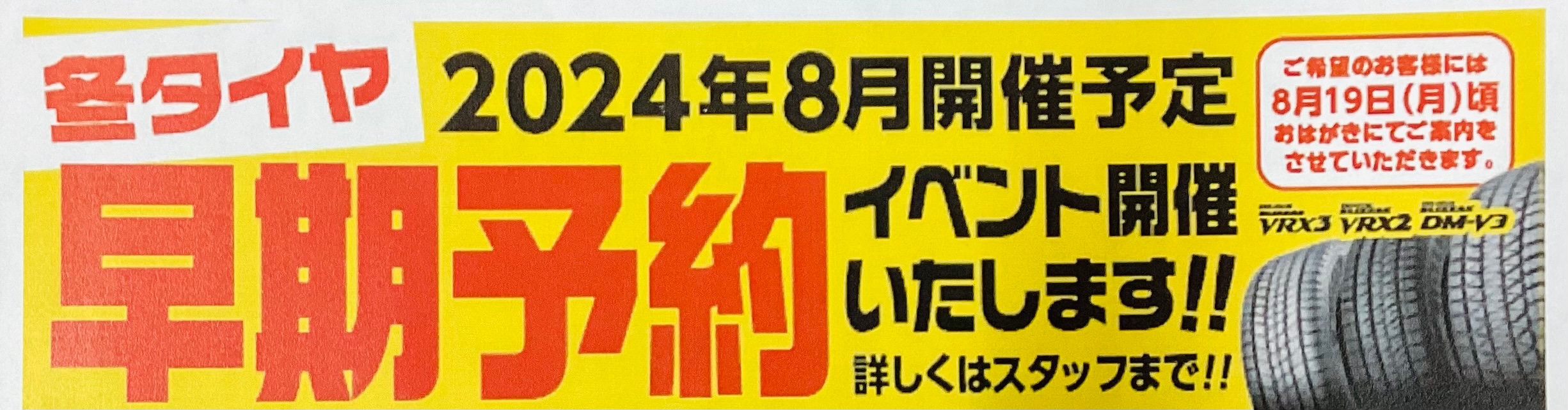 冬タイヤ早期予約大商談会予定は、8月23日〜となっております。