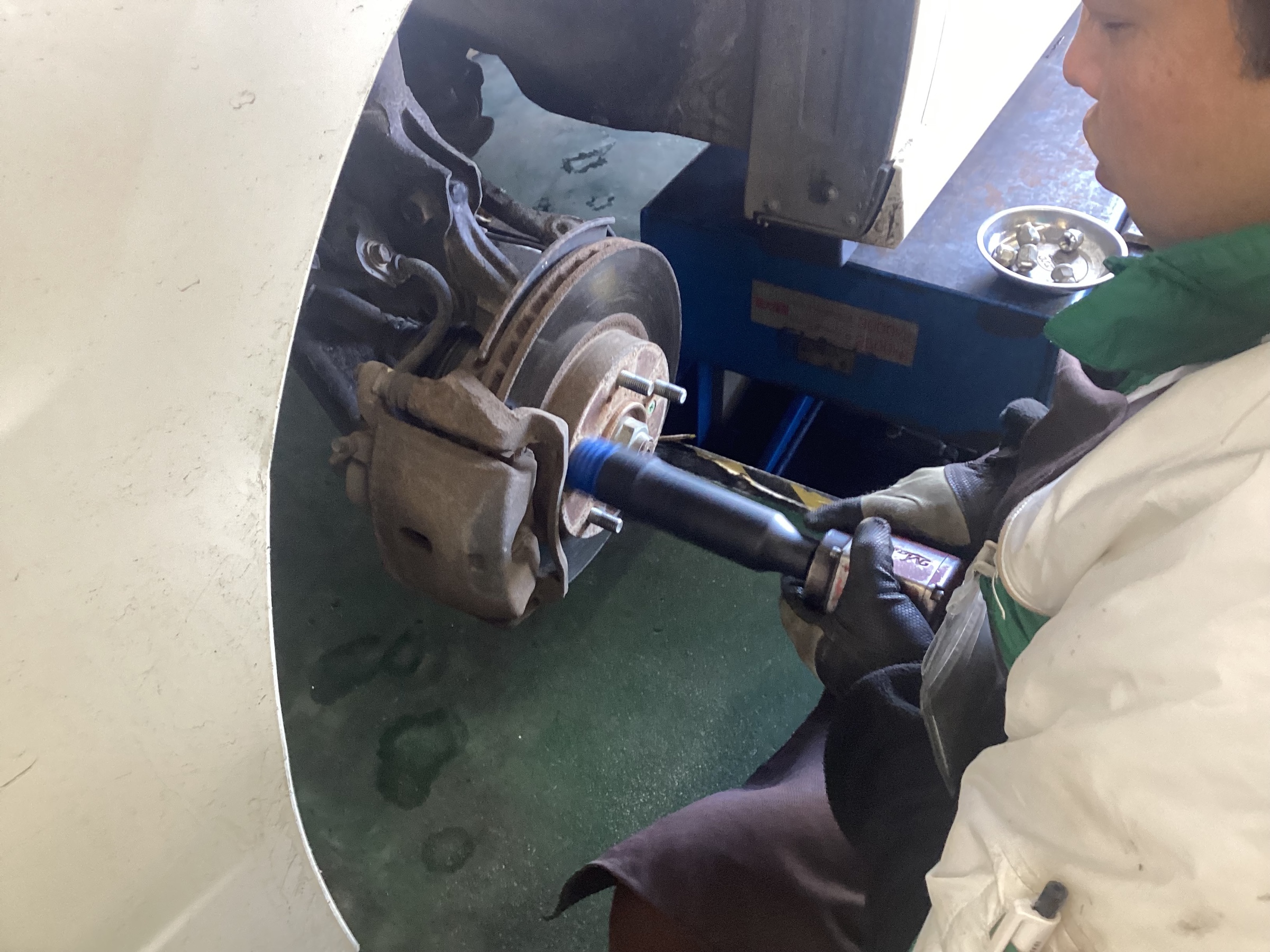 タイヤを取り外してでの作業となるので