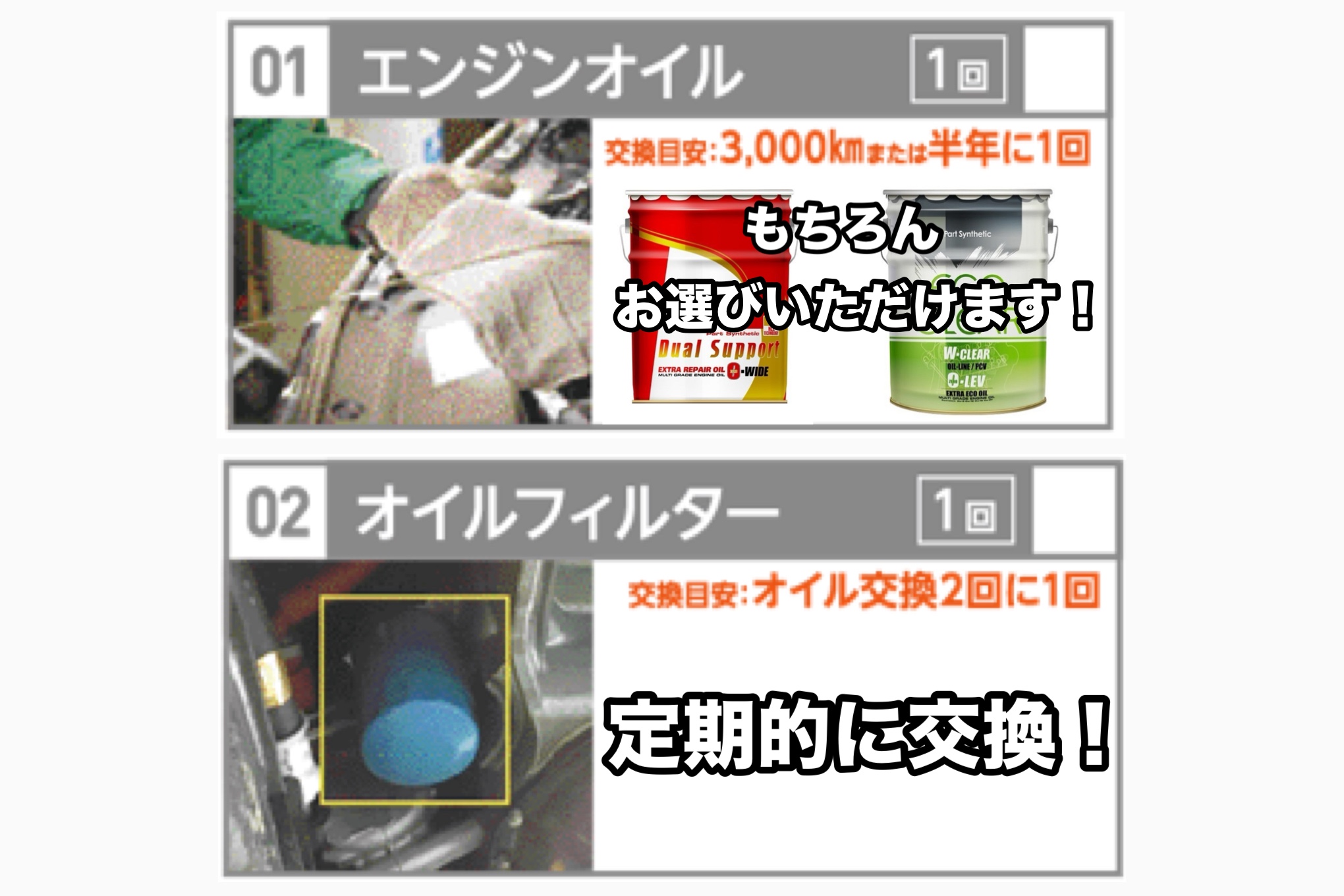 このセレクトメニューの中にオイル交換・オイルフィルターの交換が含まれております!