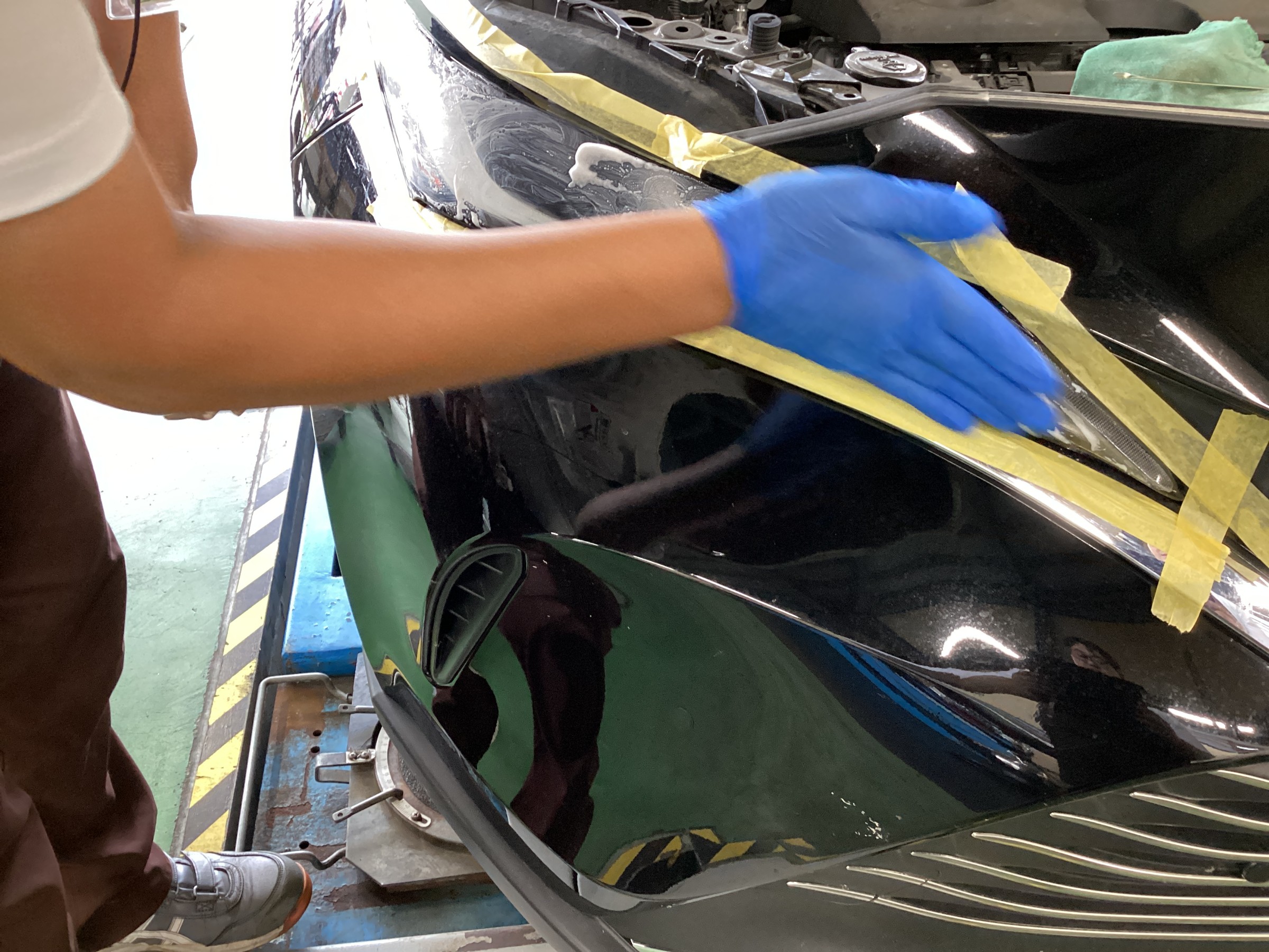 最近のお車のヘッドライトはガラスではなく樹脂でできているので