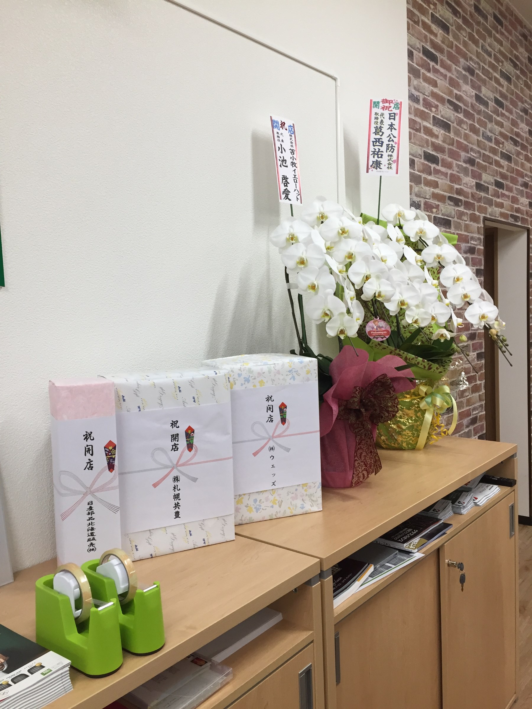 当日には、協力会社の皆様からのお祝いのお花をいただきました。