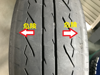 空気圧が少ないとこんな減り方になって大変危険です><