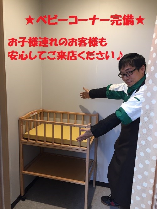 当店にはお子様連れのお客様も安心してご利用いただけるようにベビーコーナーを完備しております。