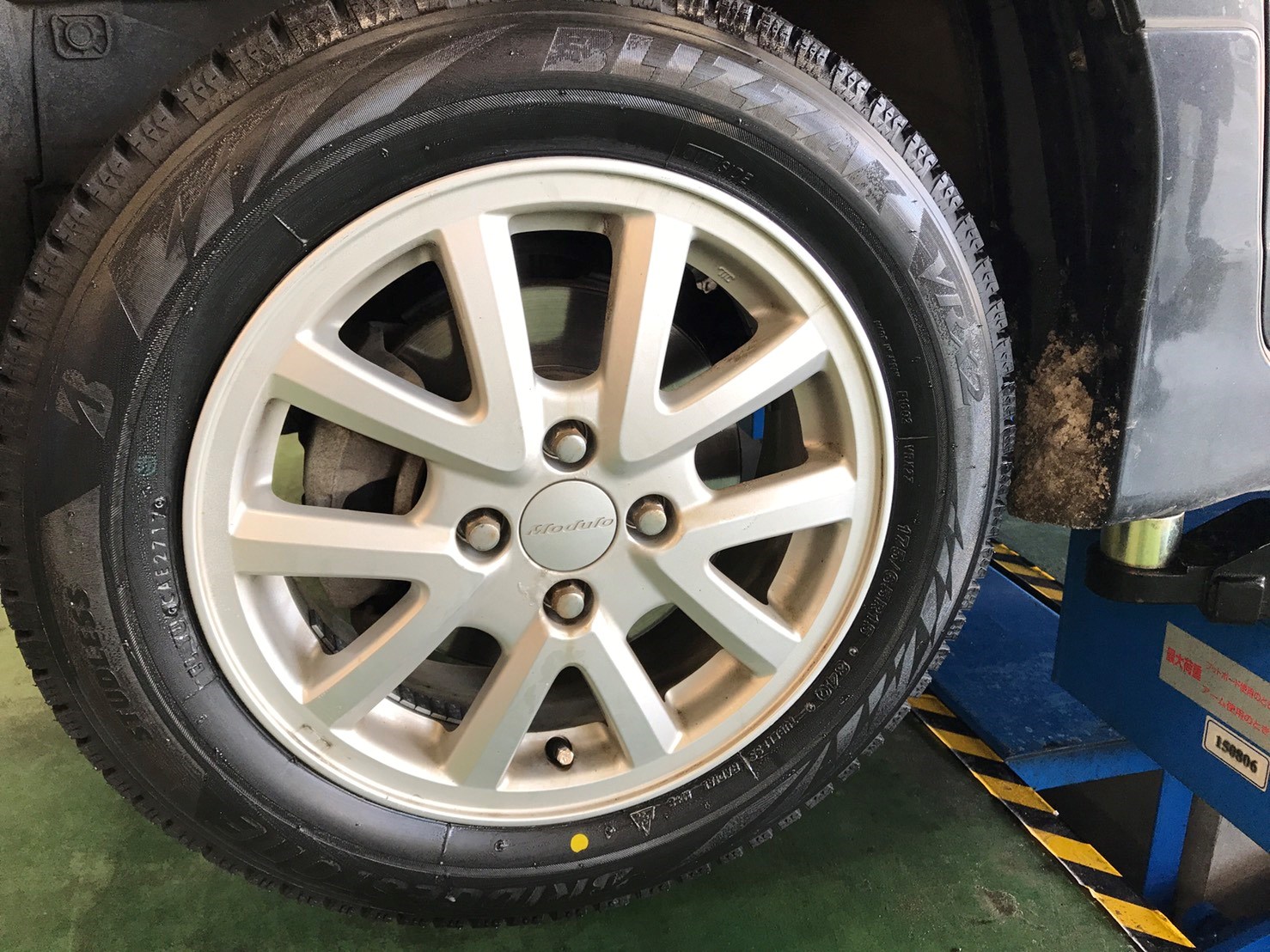 さて、今日は、タイヤ交換(ブリザック VRX2)とアライメントの作業を