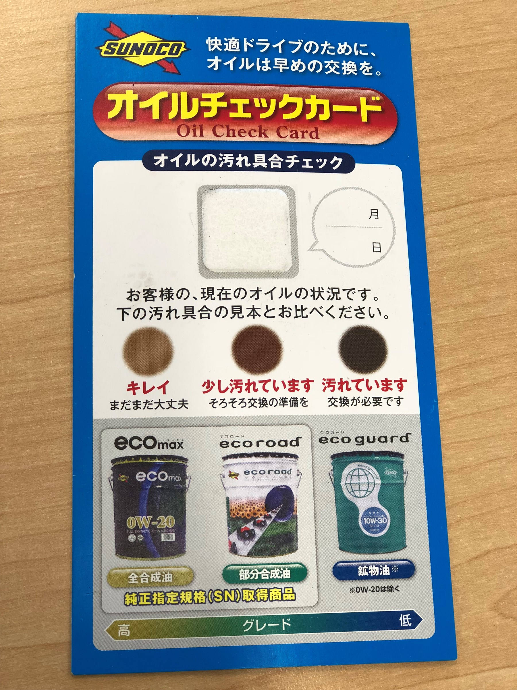 上↑のオイルチェックカードで汚れ具合を無料でチェックいたします^^♪