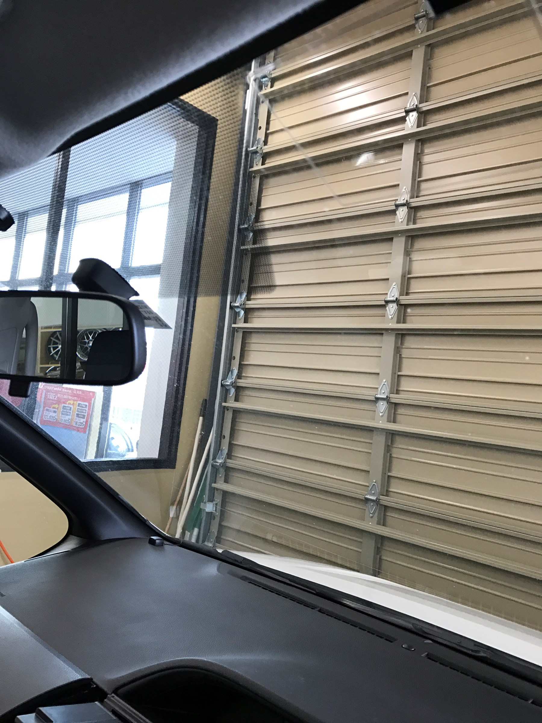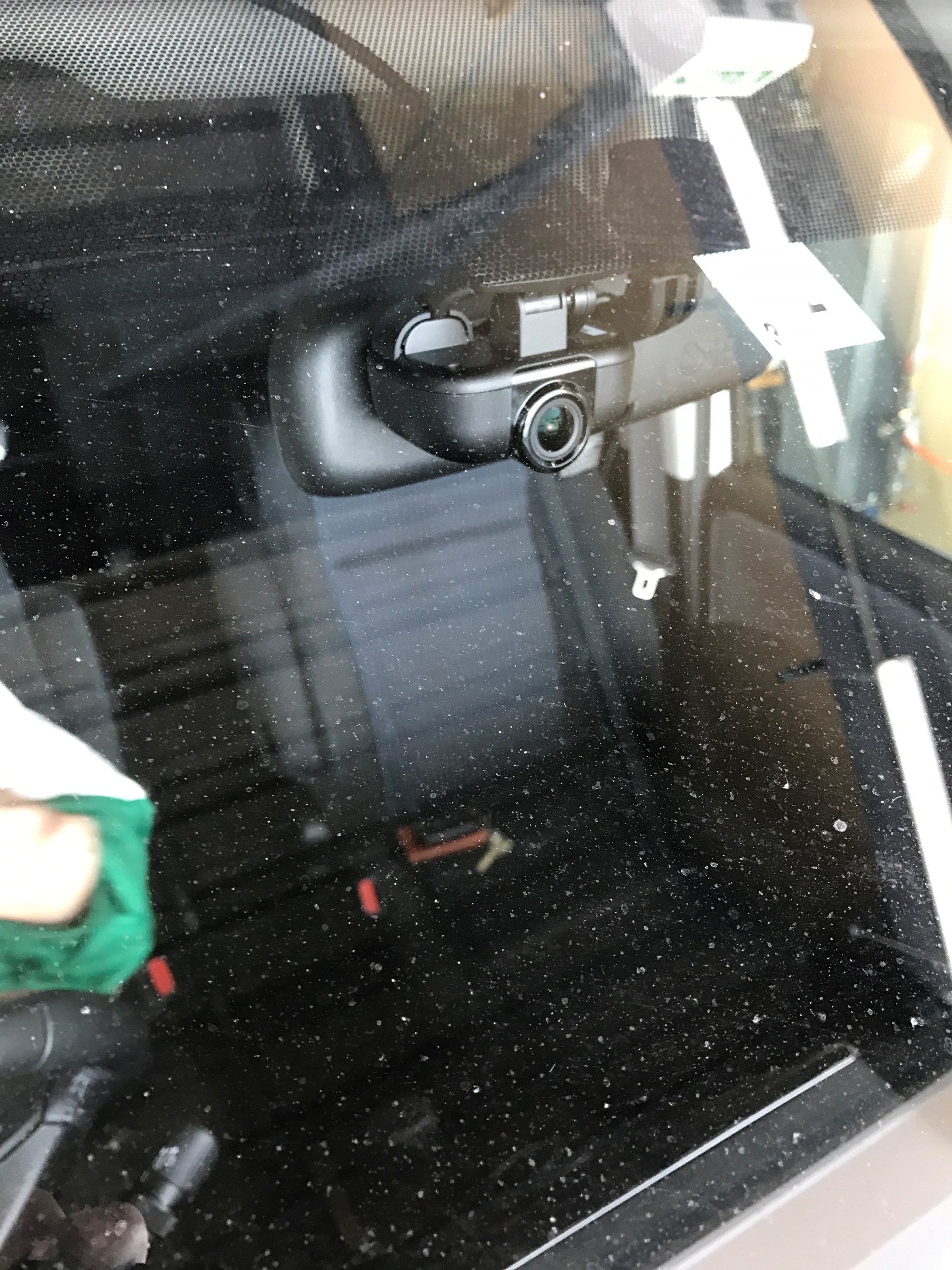 ちょうどルームミラーの影に目立たないように取り付けいたしました。