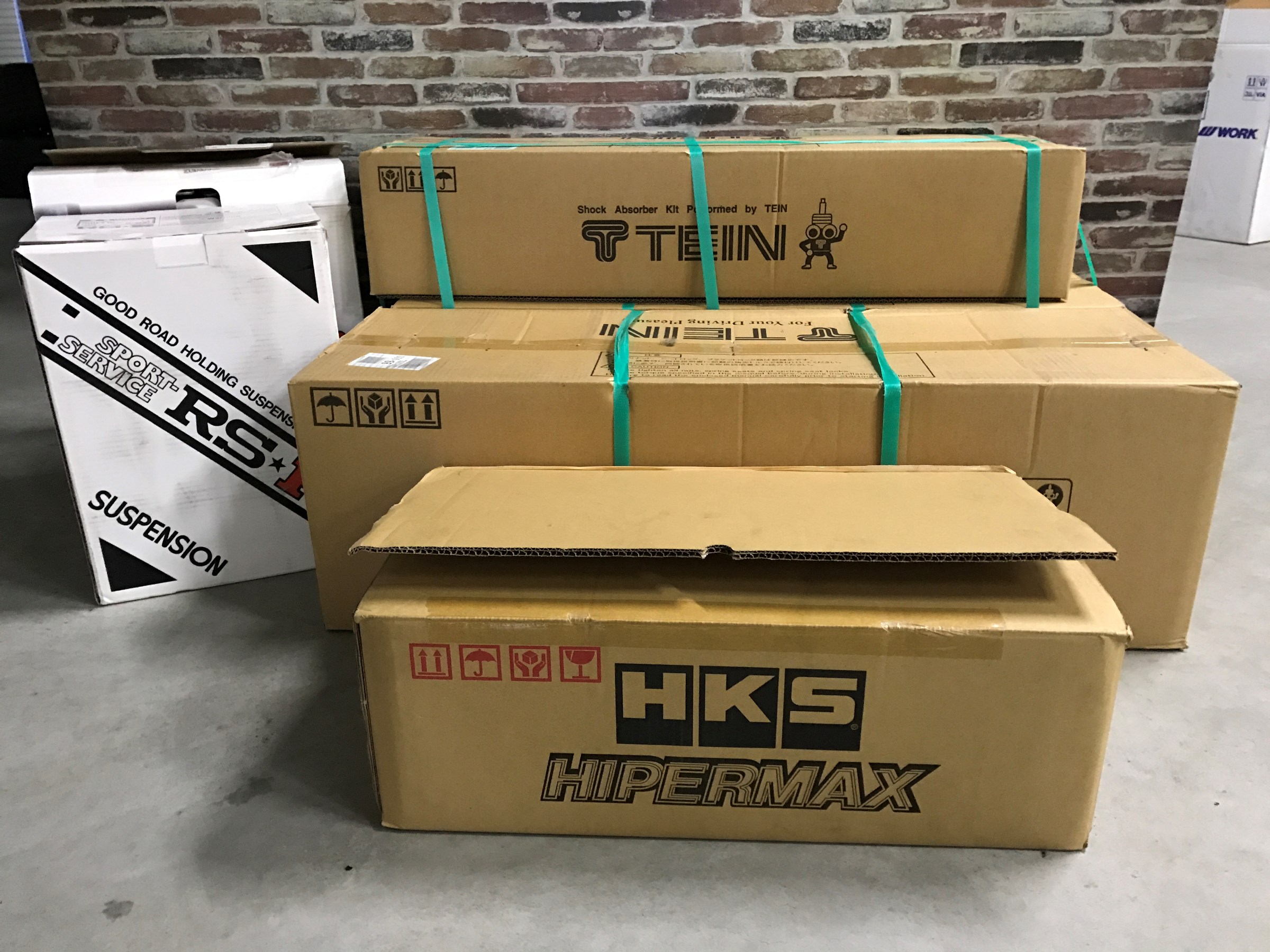 毎日お客様からご注文頂いた車高調などの部品がいっぱい届いています(笑)