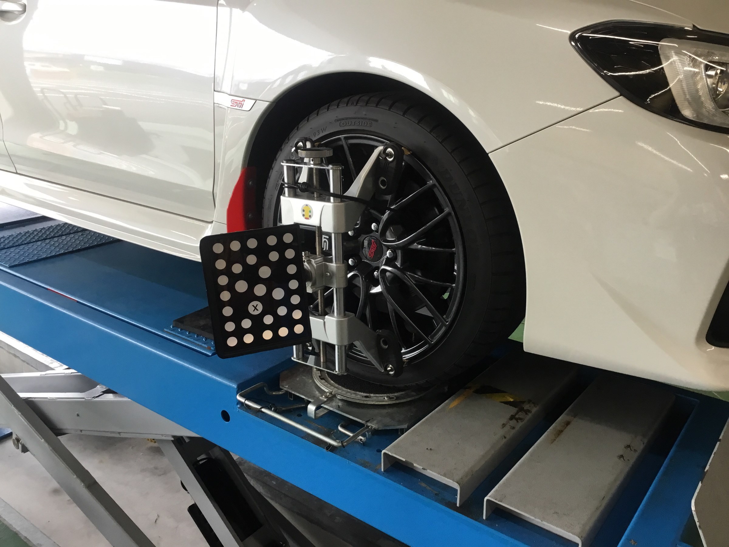 各4輪にターゲットを取り付けて、タイヤの向きが良い状態か測定します。