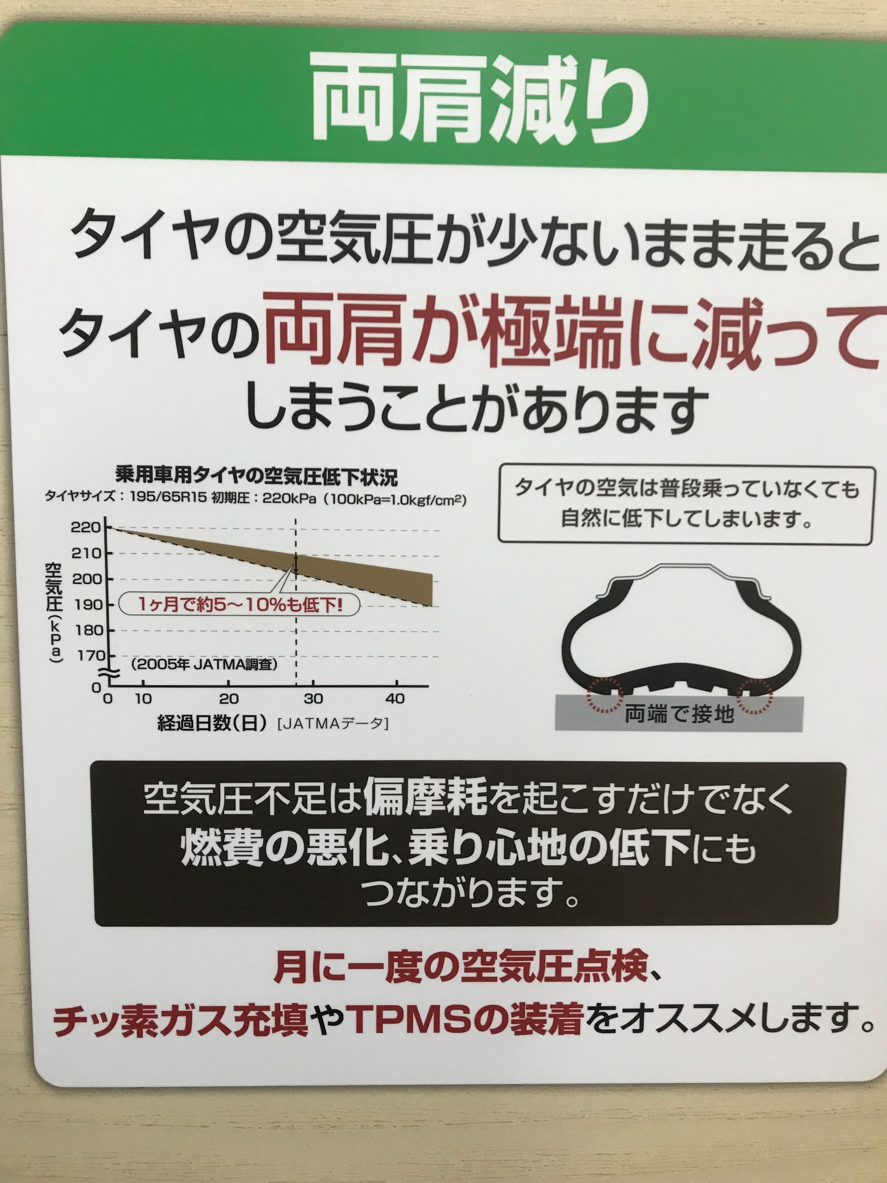 タイヤ交換をされてから、100キロ点検に来るタイミングを逃してしまい、一度も空気圧点検をしていない方いるんじゃないでしょうか?
