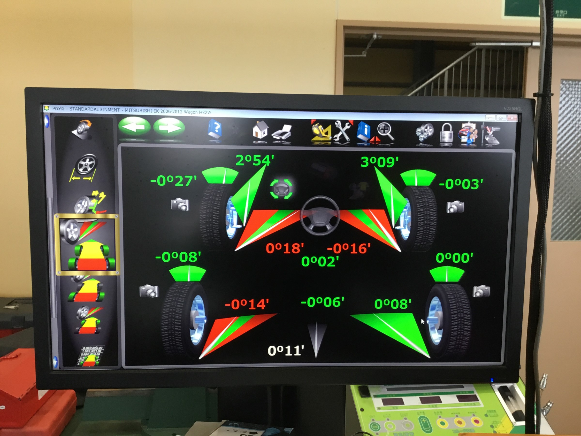 赤になると、ズレていてタイヤに負荷がかかっている状態です・・・