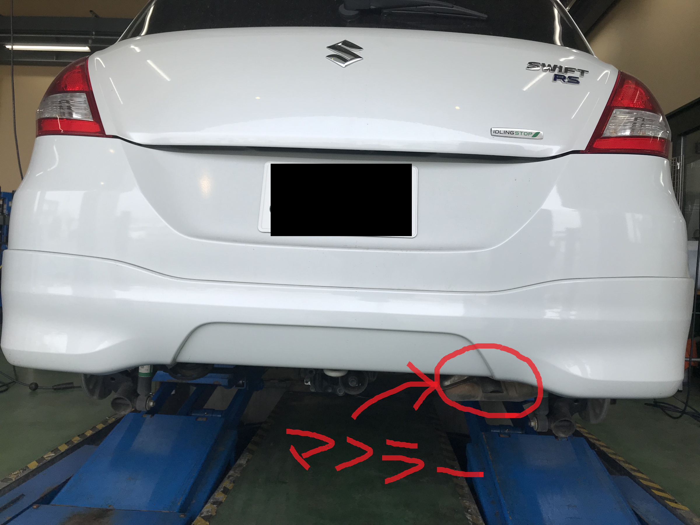 最近のお車はマフラーが下向きになっているケースが多く見えないようなっています。
