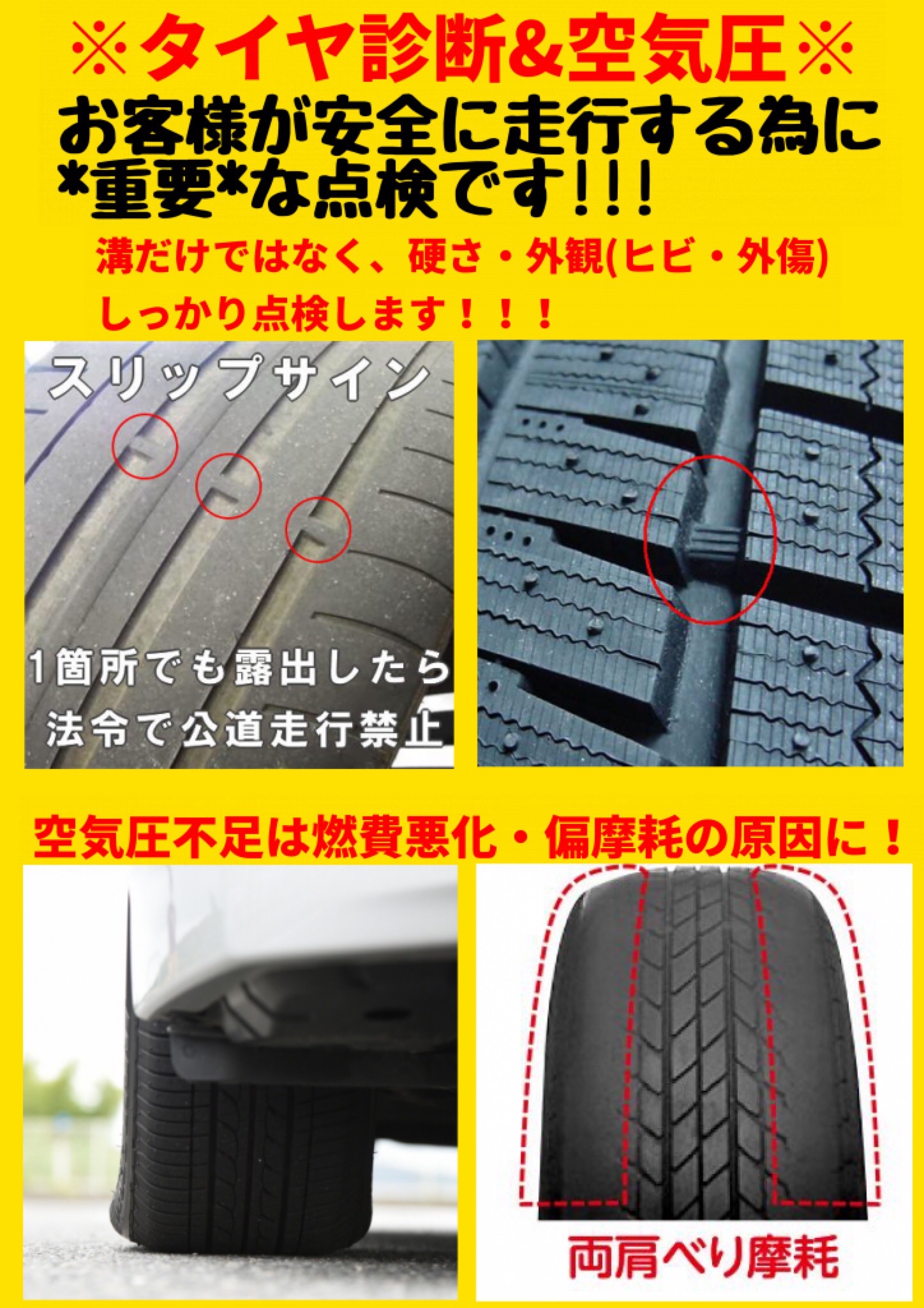 タイヤの点検は無料で行なっていますので