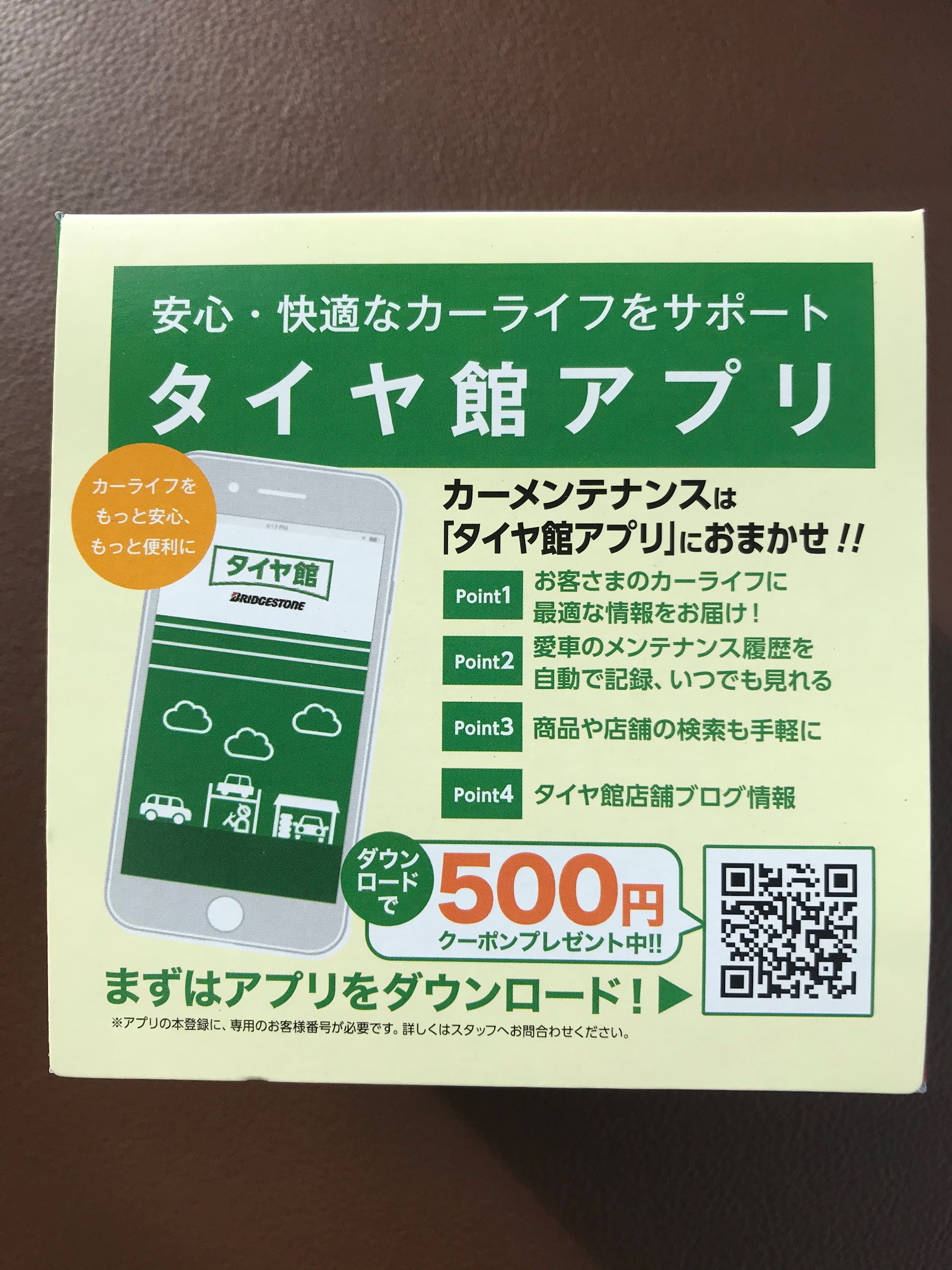 今日は、すでにタイヤ館アプリをダウンロード済みの方は知ってる話しかもしれませんが、
