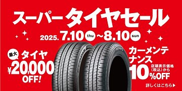 明日が最終日!!【7/10(木)~8/10(日)】タイヤが最大20,000円引き!夏の『スーパータイヤセール』開催♪