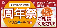 みなさんこんにちは。 タイヤ館苫小牧西の佐藤です。 3月24日~4月1日にて開催していました。当店のオープン一周年祭。 たくさんのお客様にご来店頂きおかげさまで大盛況で終わることが出来ました。 当店が1周年を迎えることが出来たのもひとえに当店をご利用して頂いてます皆様と 地域の皆様のおか...
