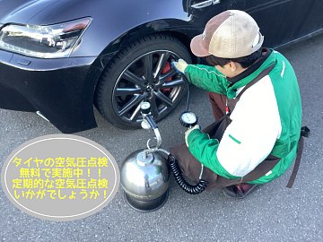 定期的なタイヤの空気圧点検できていますか?無料空気圧点検やってます!