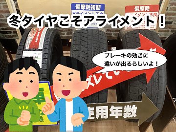 アライメント調整でスタッドレスタイヤ長持ち