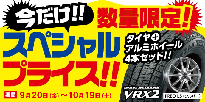 【9/20(金)~10/19(木)】数量限定!ブリザックVRX2+アルミホイールセット スペシャルプライス!