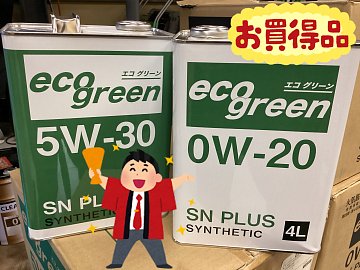 こんにちは! ジメジメした日々が続いてますね。 本日は、おもとめやすいオイルの ご紹介です!!! 当店で取り扱ってます 4L最安値オイル エコグリーンオイル 0w20と5w30で4Lまでのお車対象になります。 金額は、¥5,480税込のところ ¥2,980税込 工賃別 工賃 ¥550税込 ハイブリッドカーにも対応で...