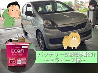 こんにちは! 中山です! 今回はダイハツミライースのバッテリーを交換しました! 取付させていただいたのはGSユアサECORのアイドリングストップ車対応のM-42というバッテリーです! 古いバッテリーを取り外して端子の繋ぎ順や固定の仕方等に注意しながら こうです! これでこの夏も安心してドライ...