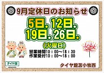 9月定休日のお知らせ!【最後も見逃せない!】