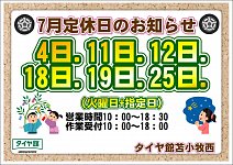 7月定休日のお知らせ