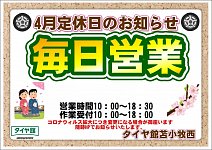 4月定休日のお知らせ