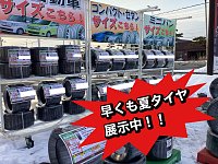 夏タイヤの展示始めてます!値上がり前にタイヤを考えている方是非ご来店を!