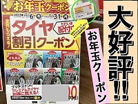 こんにちは! 店長のきむらです! 新春セールと並行して とってもお得なクーポンが あるのをご存知ですか?? その名も… 【お年玉クーポン】!!! ブリヂストンブランドタイヤご購入時にご利用頂ける タイヤ割引クーポンなんです! 期間限定ですのでお見逃しのないよう告知してきます! ~注意事項...