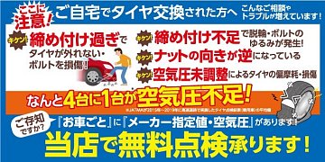 記事一覧 お車の空気圧、ナットの締め付けの点検はタイヤ館苫小牧西店にお任せください! こんにちは! タイヤ館苫小牧西店です! また最近タイヤの脱輪事故のニュースなど流れてますね。 ご自分でタイヤ交換した方はナットの締め付けは適性の力で締め付けていますか? 適性の力で締めないと次の交換の時にナットが緩まない・・ 逆に締め付け不足でナットが緩いなど・・トラブルの原因にな... 2026年4月25日 ポスト