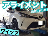 こんにちは! 店長のきむらです! 4/24のスタッフ日記でも紹介しました、 トヨタ ヴィッツへの夏タイヤ交換ですが 新品へ交換の時にはアライメントがオススメです! 右画像にもありますが 左上のタイヤの向きが傾いているのがわかります! 安心して走っていただけるよう、 ばっちり調整を行いました...