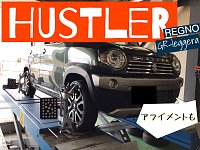 こんにちは! 店長のきむらです! 本日もスゴ得SALE真っ只中ですが、 作業事例のご紹介です! お車:ハスラー タイヤパターン:REGNO GR-Leggera (レグノ GR-レジェーラ) タイヤを装着後は、アライメント調整です。 右側の写真は数値の動きを示した模型です! 特に左前のタイヤが基準値からずれが大...