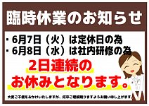こんにちは! 木村 卓と申します! 6/7 6/8は店舗はお休みとなっております! 皆様にご迷惑をお掛けしますがお願い致します。 6/9は通常営業しております!お待ちしております! 店舗お休みカレンダー こちらを合わせてチェックお願い致します!