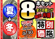こんにちは! 木村 卓と申します! タイヤ購入するなら8本セットがお得!!!!! 現在セールも開催中! セール詳細はコチラをクリック! 今だけの特別価格でご案内! 皆様のご来店お待ちしております!