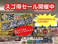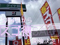 雪解けも進み春が近づいてきます! 今年は雪が多かったせいで、春の訪れが感じられますよね。 となれば車も冬から夏の装いに変える時期です。 そして!只今スゴ得セールを開催中! 値上がり前の、夏冬同時購入もオススメ! 夏タイヤ買うなら今! 冬タイヤも今がチャンス! お得なセールをお見逃しな...