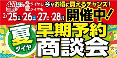 こんにちは! 店長のきむらです! 2月25日〜28日に開催された 夏タイヤ早期予約商談会! 夏タイヤや冬タイヤをはじめ、 なかには同時に8本ご成約頂いたお客様や アルミホイールのご成約などなど たくさんのご成約を頂き、 ご来店者様、誠にありがとうございました! 景品もたくさんお持ち帰り頂き大...
